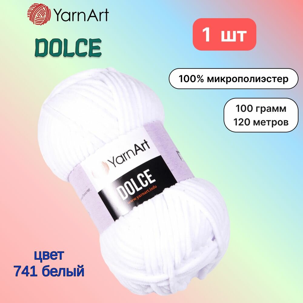 Пряжа YarnArt Dolce Белый (741) 1 моток 100 г/120 м (100% микрополиэстер) ярнарт дольче интересное: