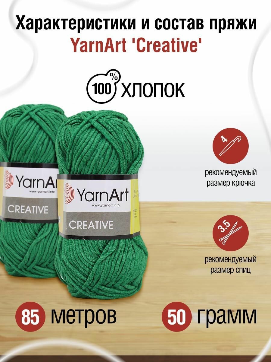 Пряжа YarnArt Creative, 50 г, 85 м, 100% хлопок Зеленый