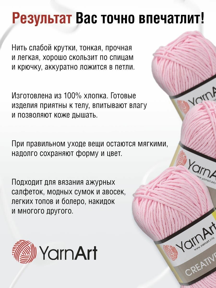 Пряжа YarnArt Creative 50г, 85м (ЯрнАрт Креатив) Нитки для вязания, 100% хлопок, цвет 225 пудра, 1шт
