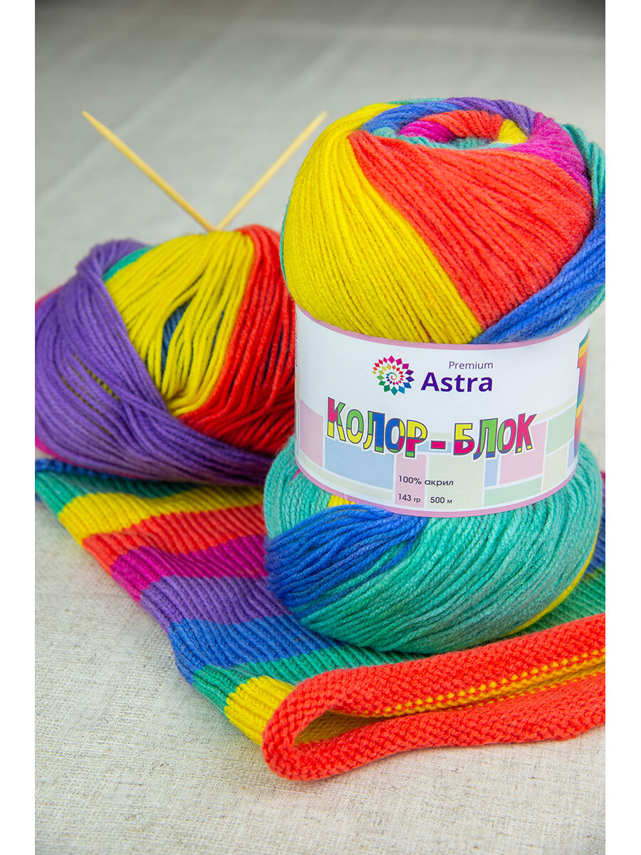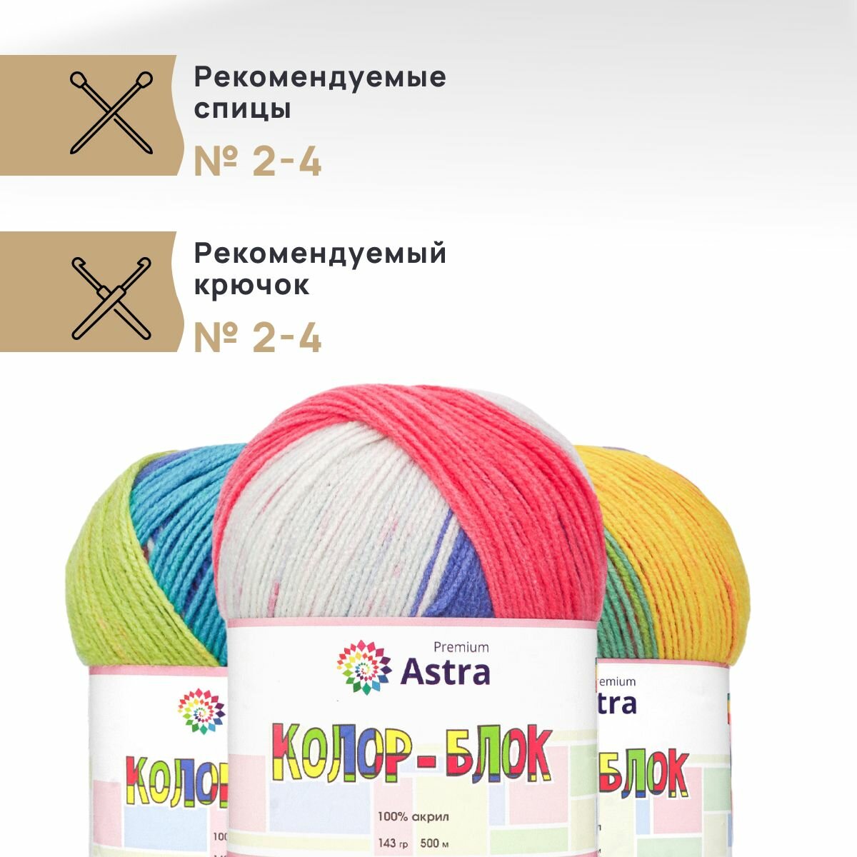 Пряжа для вязания Astra Premium 'Колор-блок' (Color-block) 143 г, 500 м (100% акрил) (03 длинно-секционный), 2 мотка