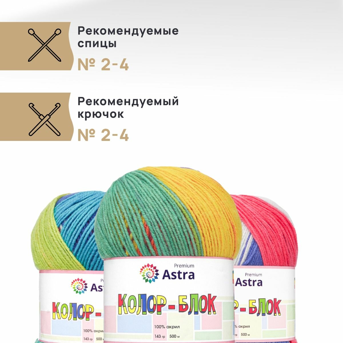 Пряжа для вязания Astra Premium 'Колор-блок' (Color-block) 143 г, 500 м (100% акрил) (03 длинно-секционный), 2 мотка