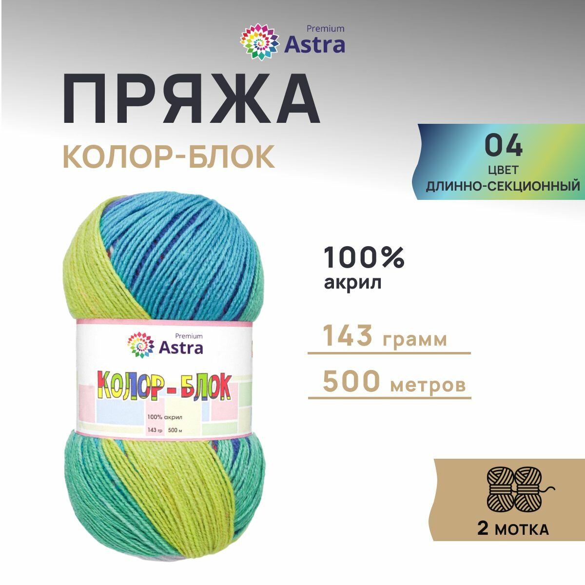 Пряжа для вязания Astra Premium 'Колор-блок' (Color-block) 143 г, 500 м (100% акрил) (04 длинно-секционный), 2 мотка