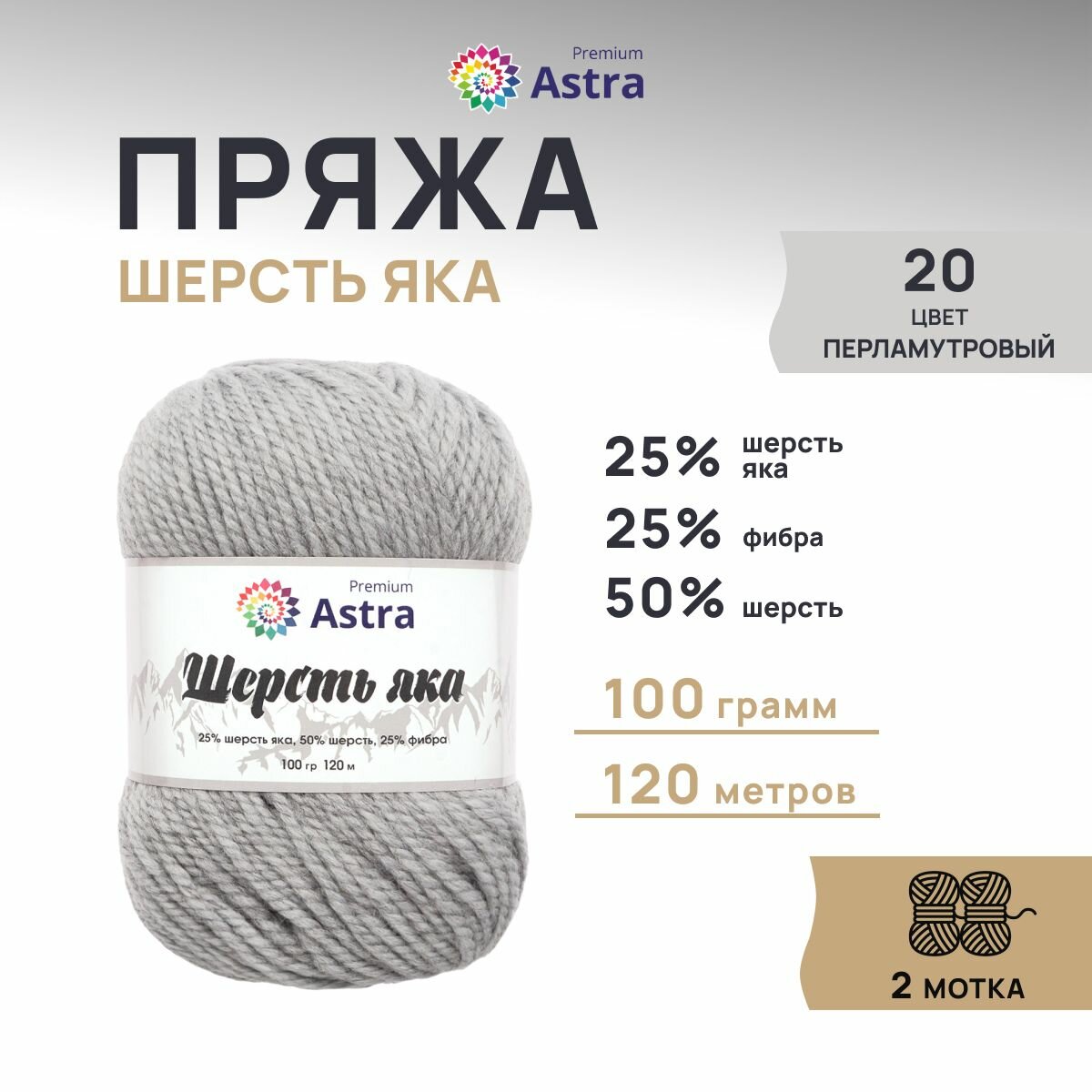 Пряжа для вязания Astra Premium 'Шерсть яка' (Yak wool), 100 г, 120 м (+/-5%) (25% шерсть яка, 50% шерсть, 25% фибра) (20 перламутровый), 2 мотка
