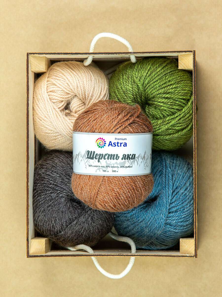 Пряжа для вязания Astra Premium 'Шерсть яка' (Yak wool), 100 г, 120 м (+/-5%) (25% шерсть яка, 50% шерсть, 25% фибра) (24 зеленый мох), 2 мотка