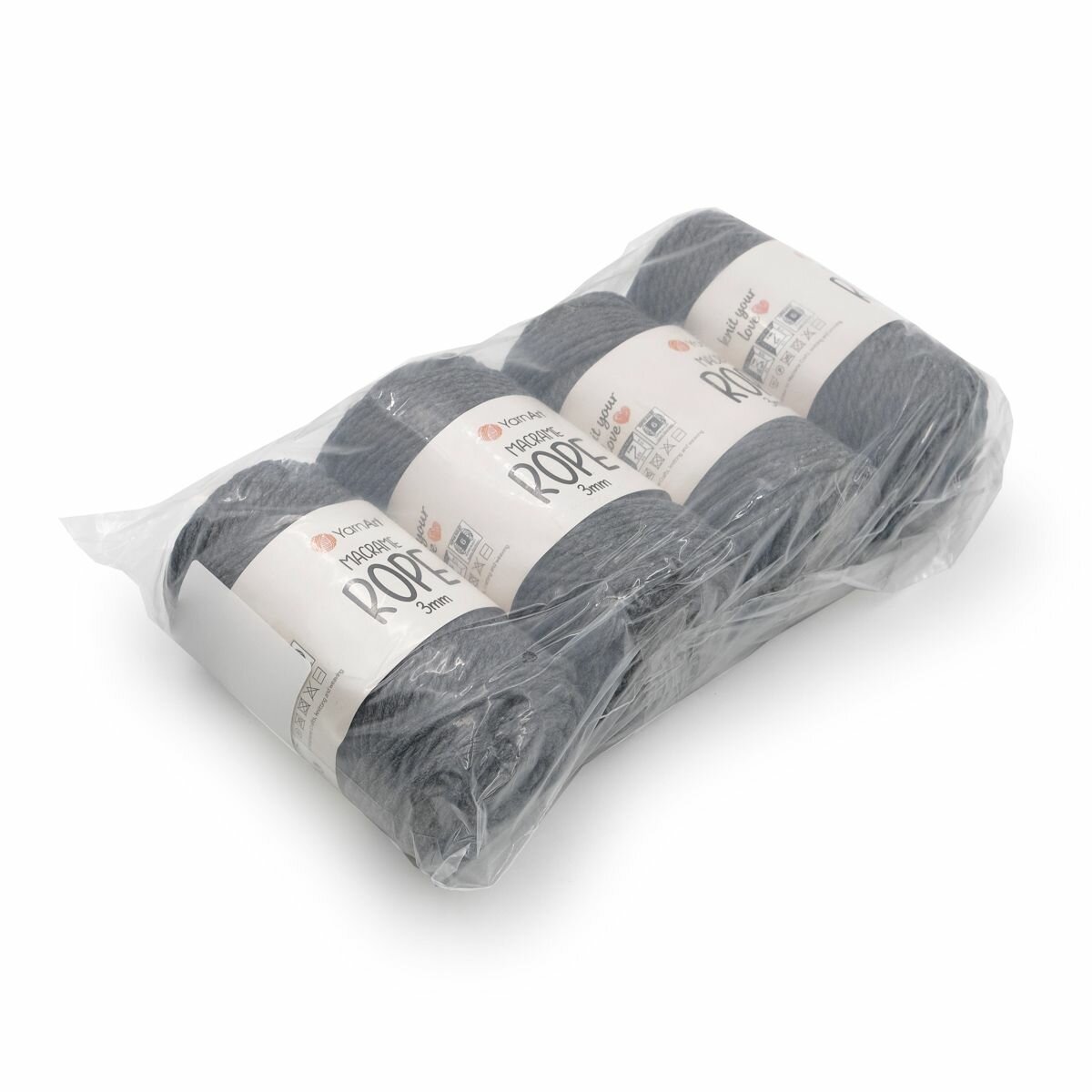 Купить Пряжа для вязания YarnArt 'Macrame Rope 3мм' 250г, 63м (хлопок, вискоза, полиэстер) (758 антрацит), 4 мотка