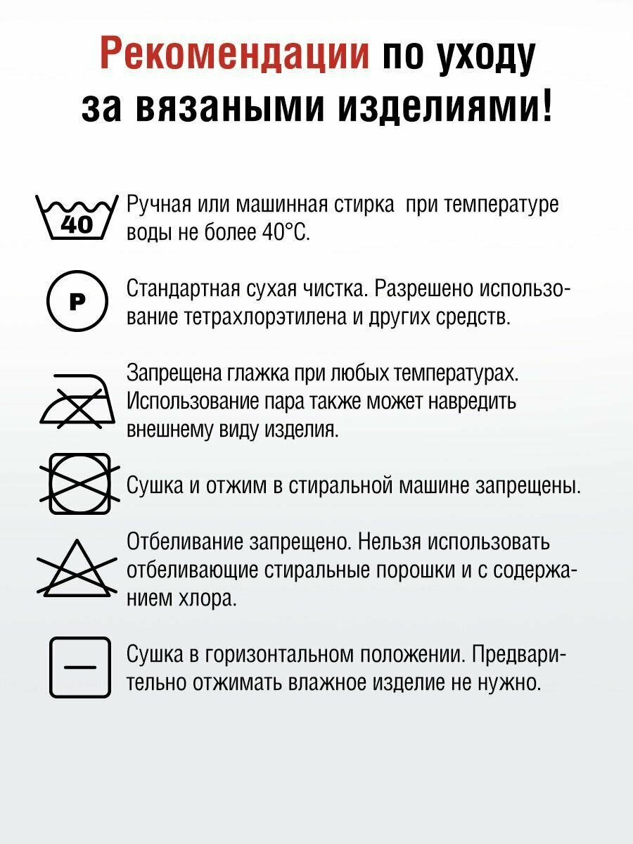 | Плотность вязания для образца 10х10 см | 34 петли х 48 рядов |