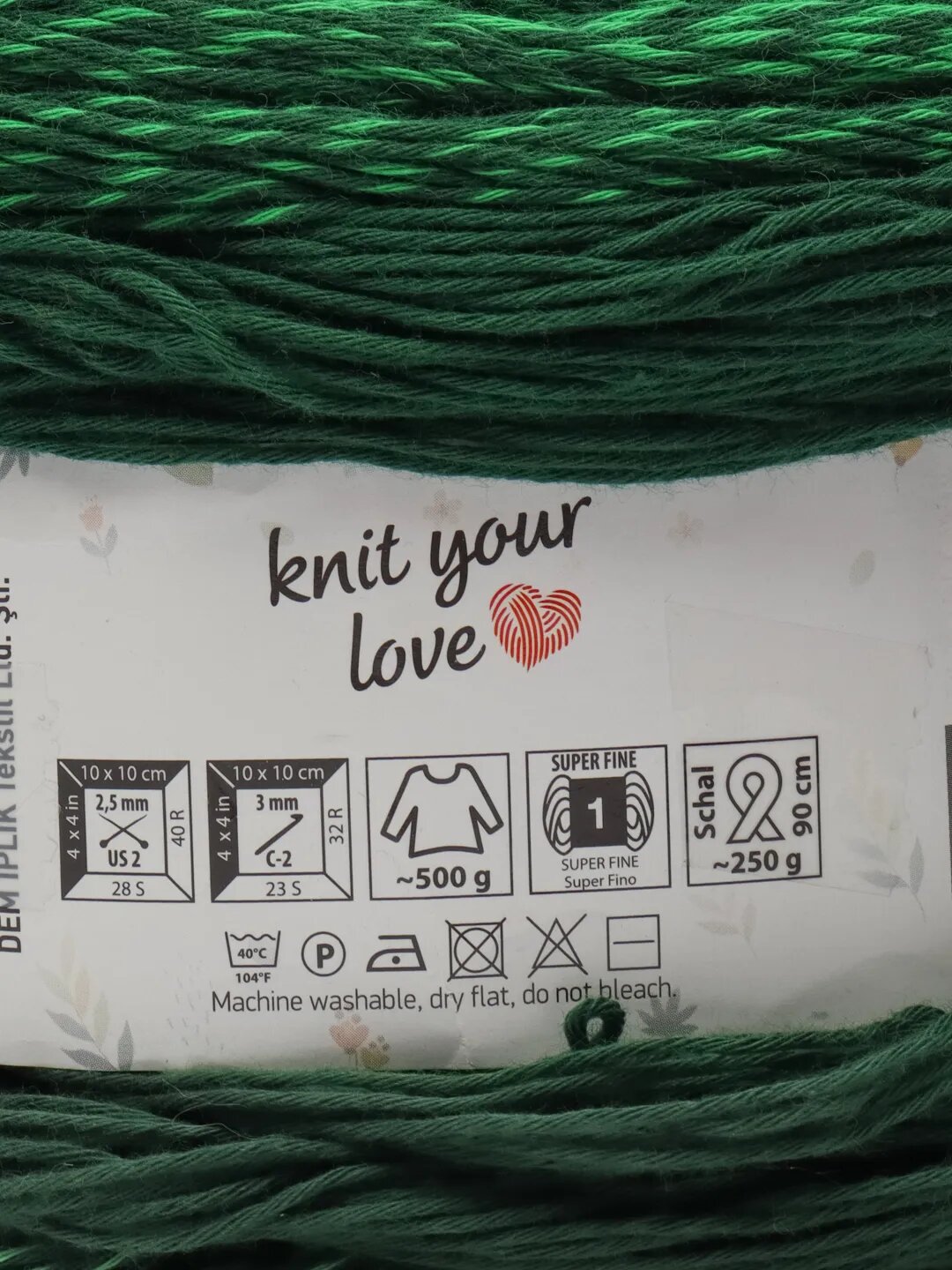 Пряжа Rosegarden YarnArt, т.зелёный-зелёный-белый - 319, 100% хлопок, 2 мотка, 250 г., 1000 м.