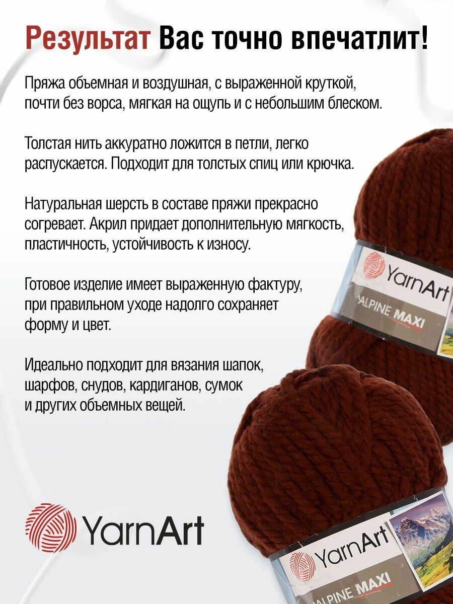 СохранитьПряжа для вязания YarnArt 'Alpine Maxi' 250г, 105м (40% шерсть, 60% акрил) (663 коричневый), 2 мотка интересное: