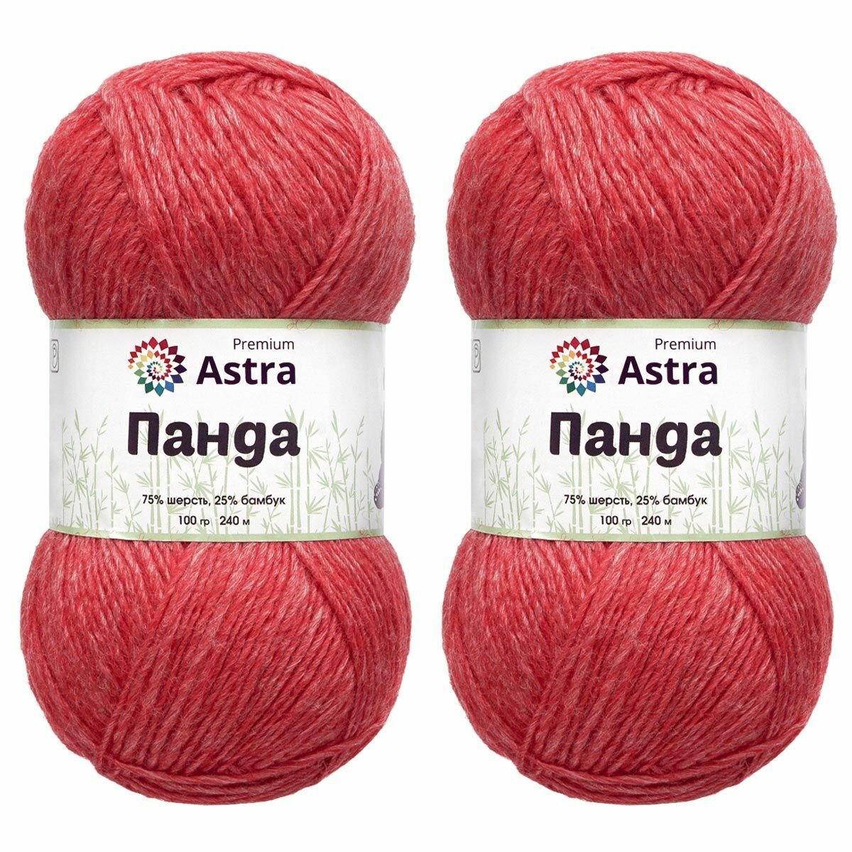 Пряжа для вязания Astra Premium 'Панда' (Panda) 100гр 240м (75% шерсть, 25% бамбук) (151 красный), 2 мотка