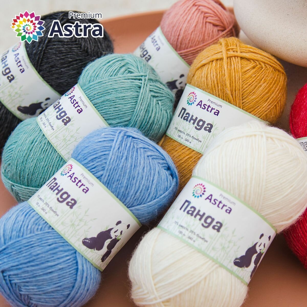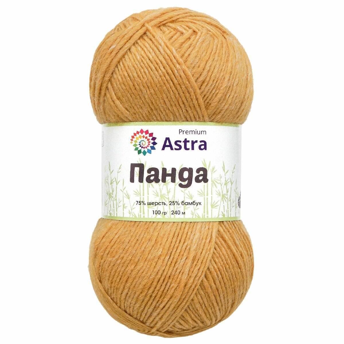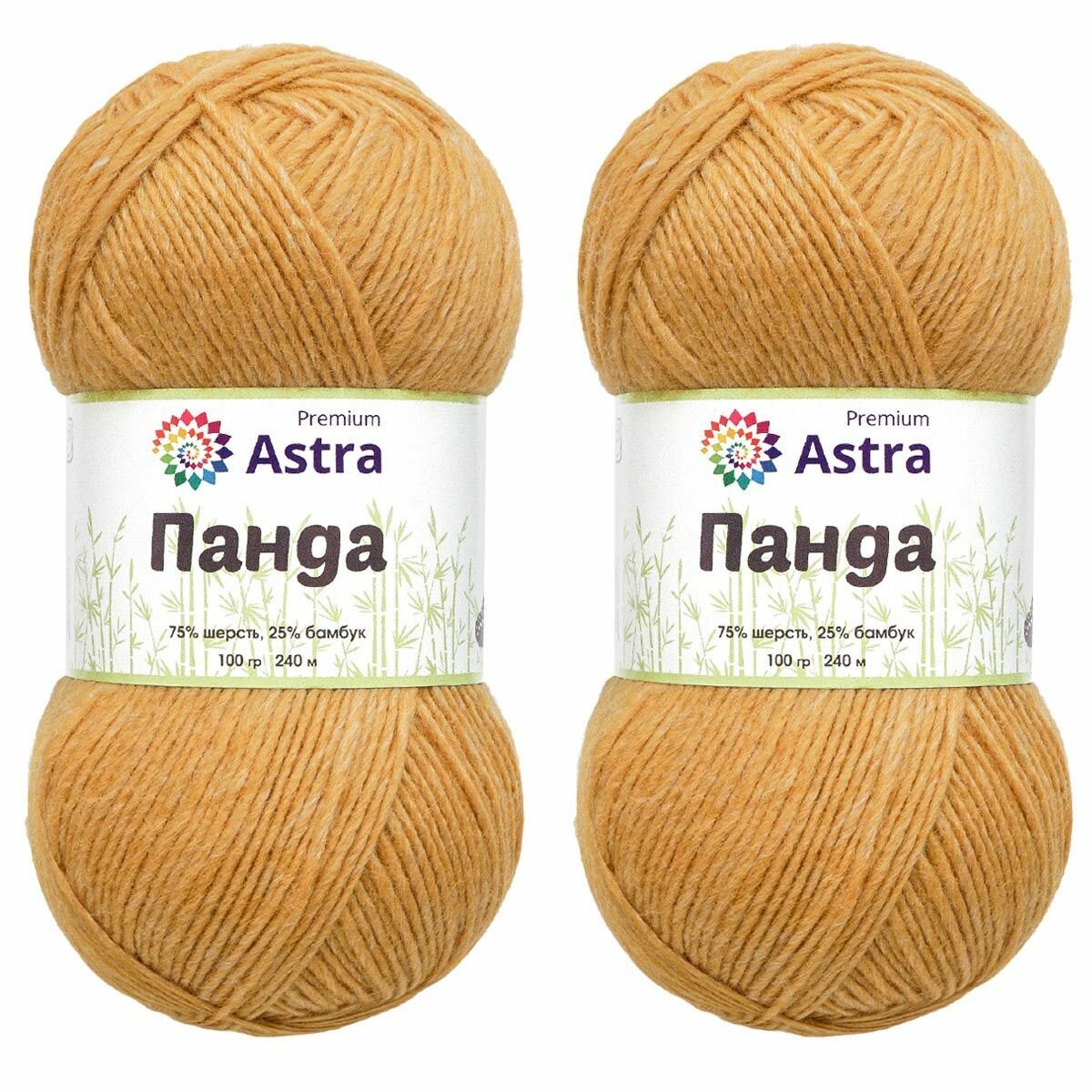 Пряжа для вязания Astra Premium 'Панда' (Panda), 100 г, 240 м (75% шерсть, 25% бамбук) (295 охра), 2 мотка