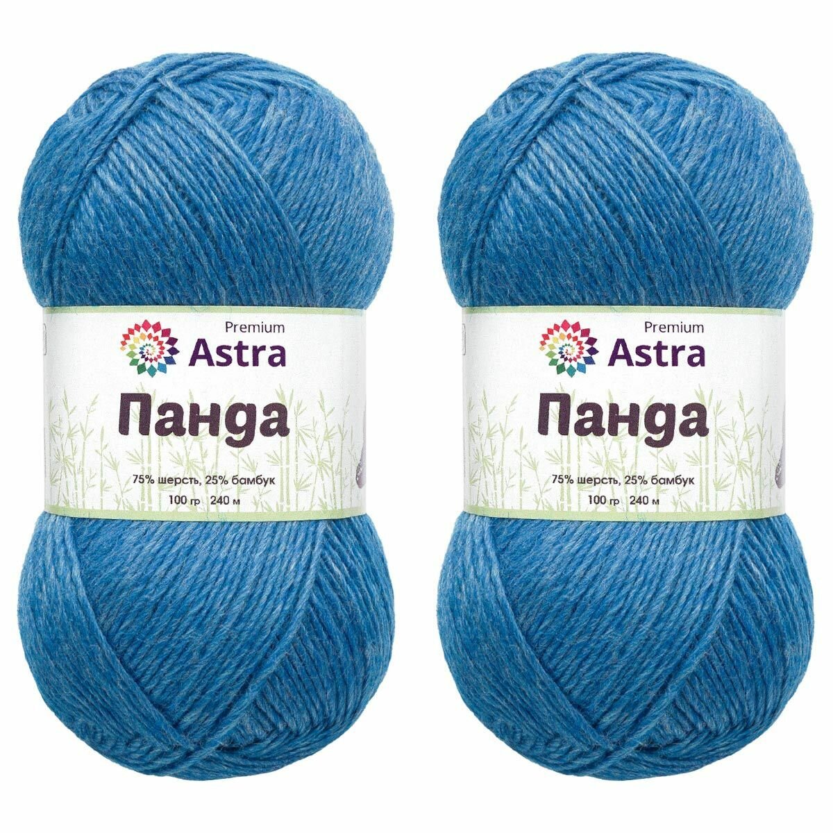 Пряжа Astra Premium "Панда", 100 гр 240 м, 75% шерсть, 25% бамбук, 610 темно-голубой, 2 шт