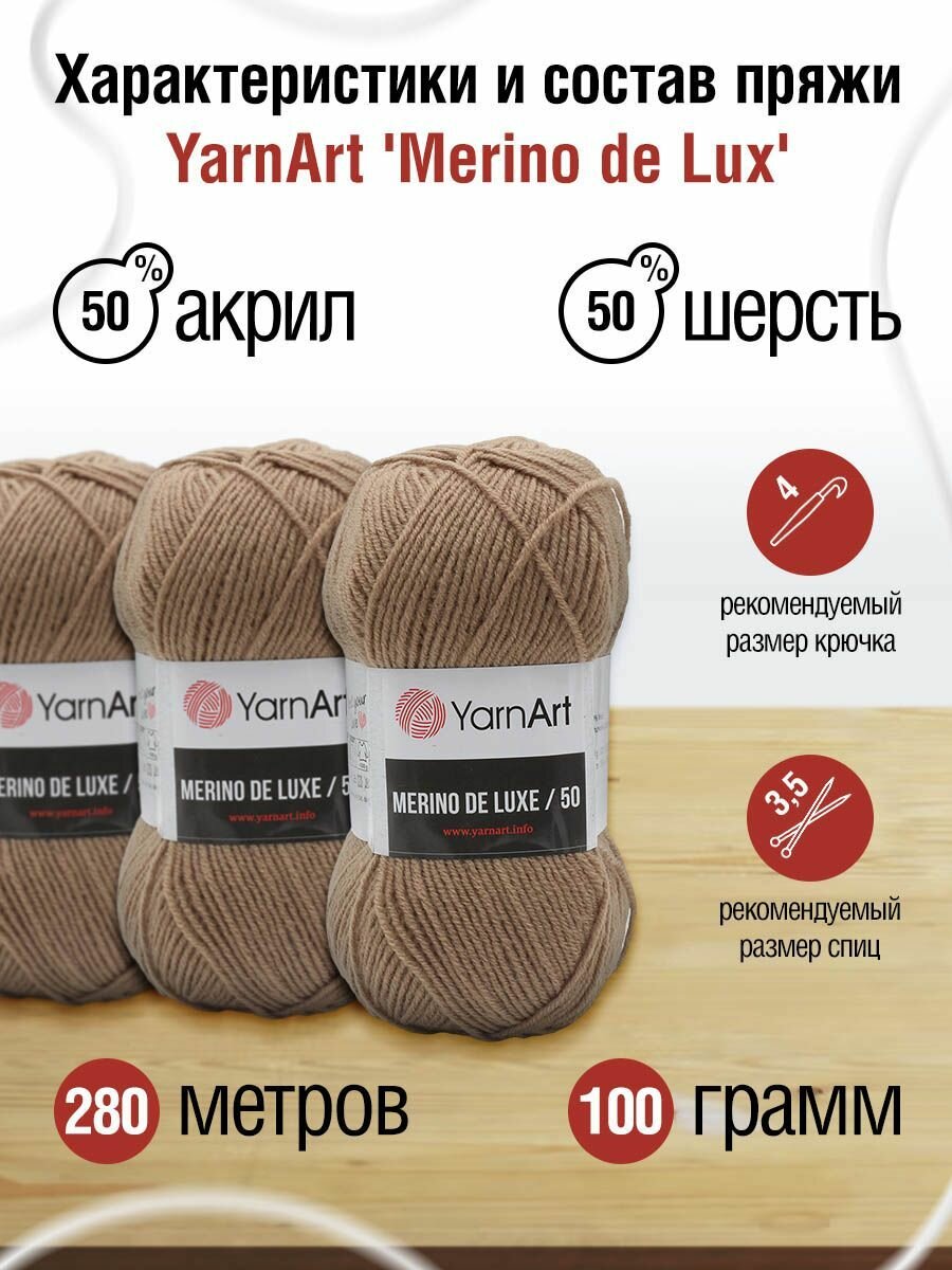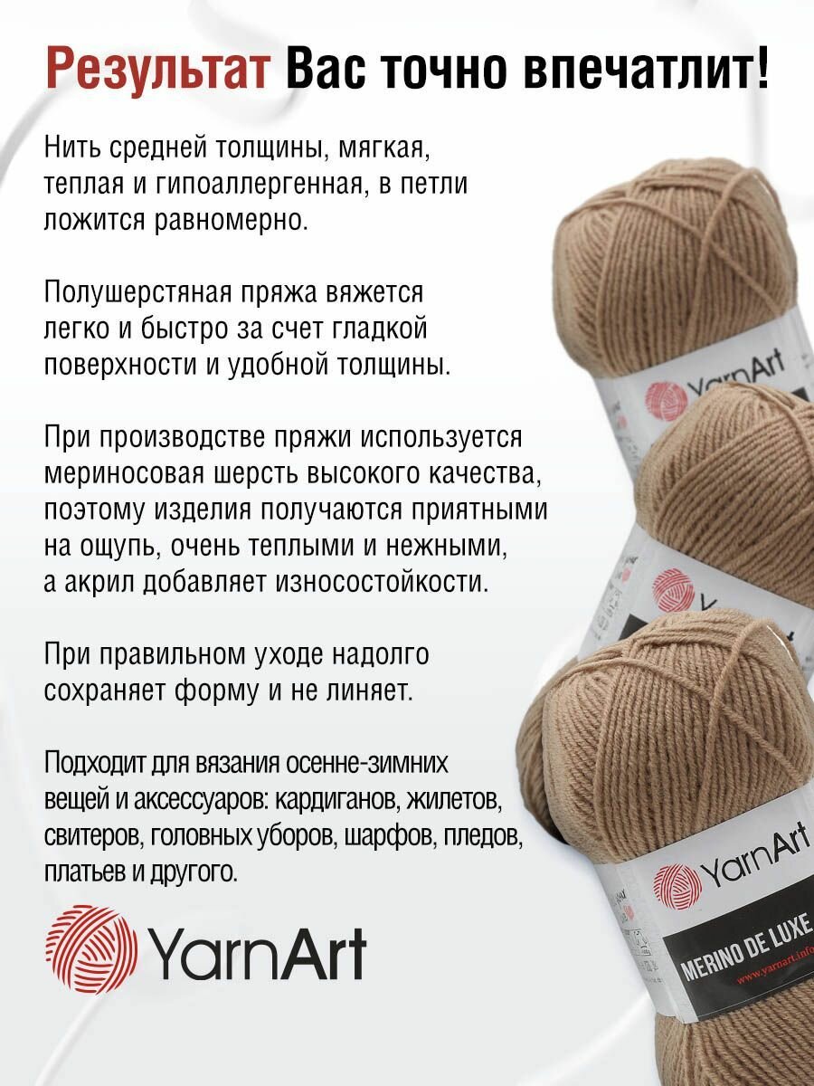 Пряжа для вязания YarnArt 'Merino de Lux' 100г, 280м (50% шерсть, 50% акрил) (514 кофе с молоком), 5 мотков