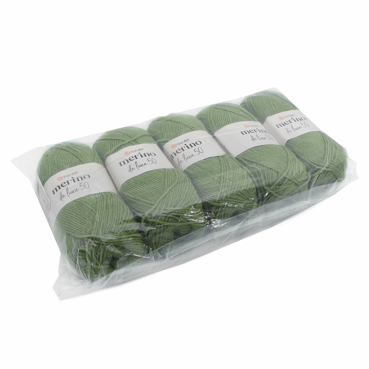 Пряжа MERINO DE LUXE 50 (YarnArt), зеленый - 338, 50% шерсть, 50% акрил, 5 мотков, 100 г, 280 м.