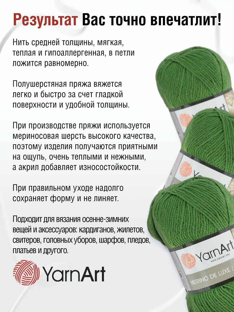 Пряжа для вязания YarnArt 'Merino de Lux' 100г, 280м (50% шерсть, 50% акрил) (530 темно-оливковый), 5 мотков