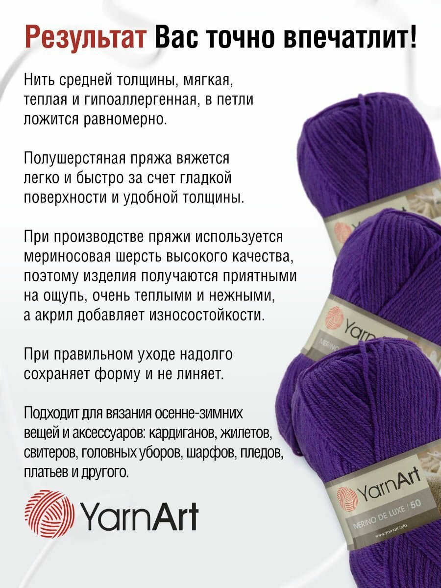 Пряжа MERINO DE LUXE 50 (YarnArt), фиолетовый - 556, 50% шерсть, 50% акрил, 5 мотков, 100 г, 280 м.