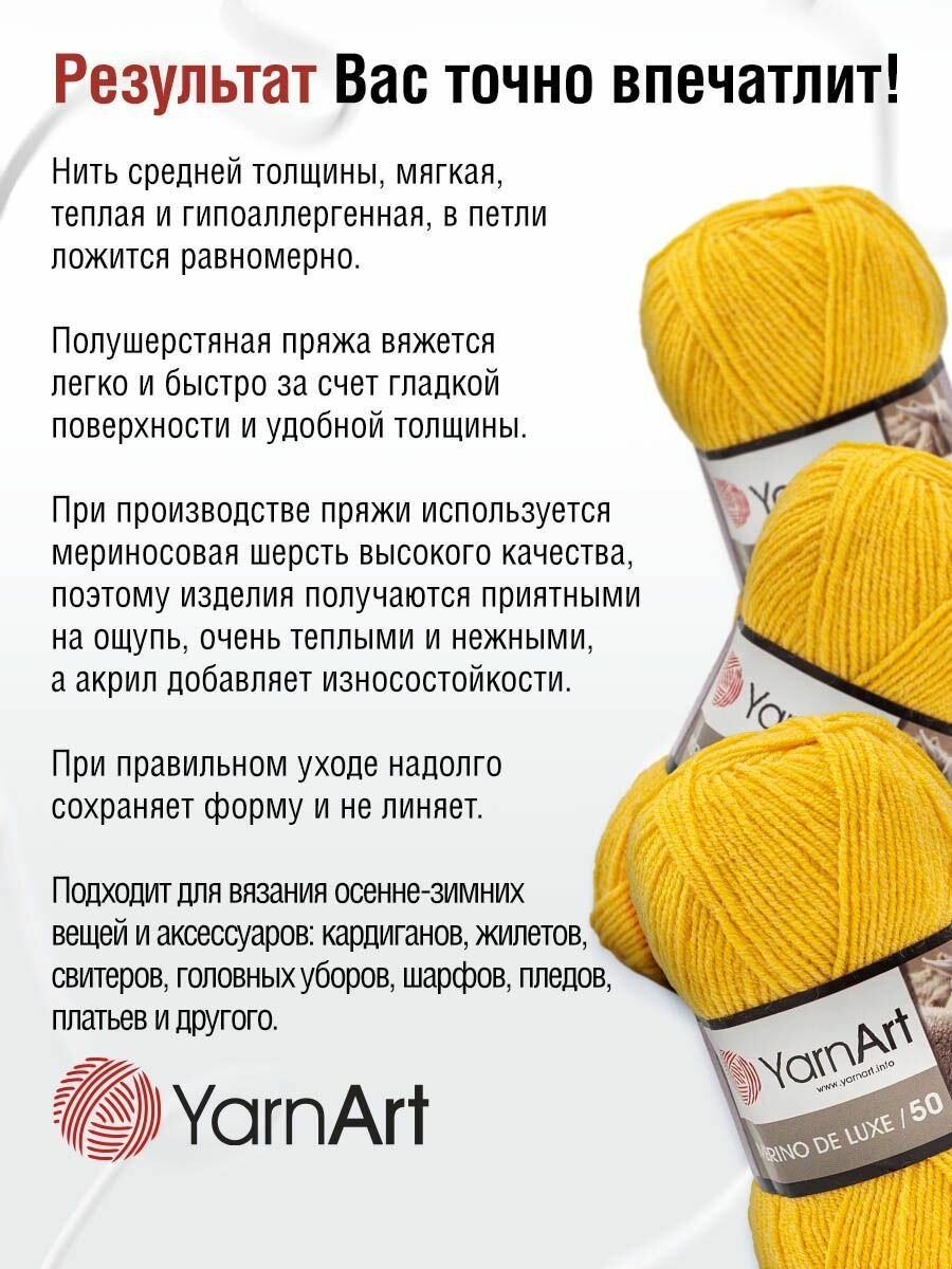 СохранитьПряжа для вязания YarnArt 'Merino de Lux' 100г, 280м (50% шерсть, 50% акрил) (586 горчичный), 5 мотков интересное: