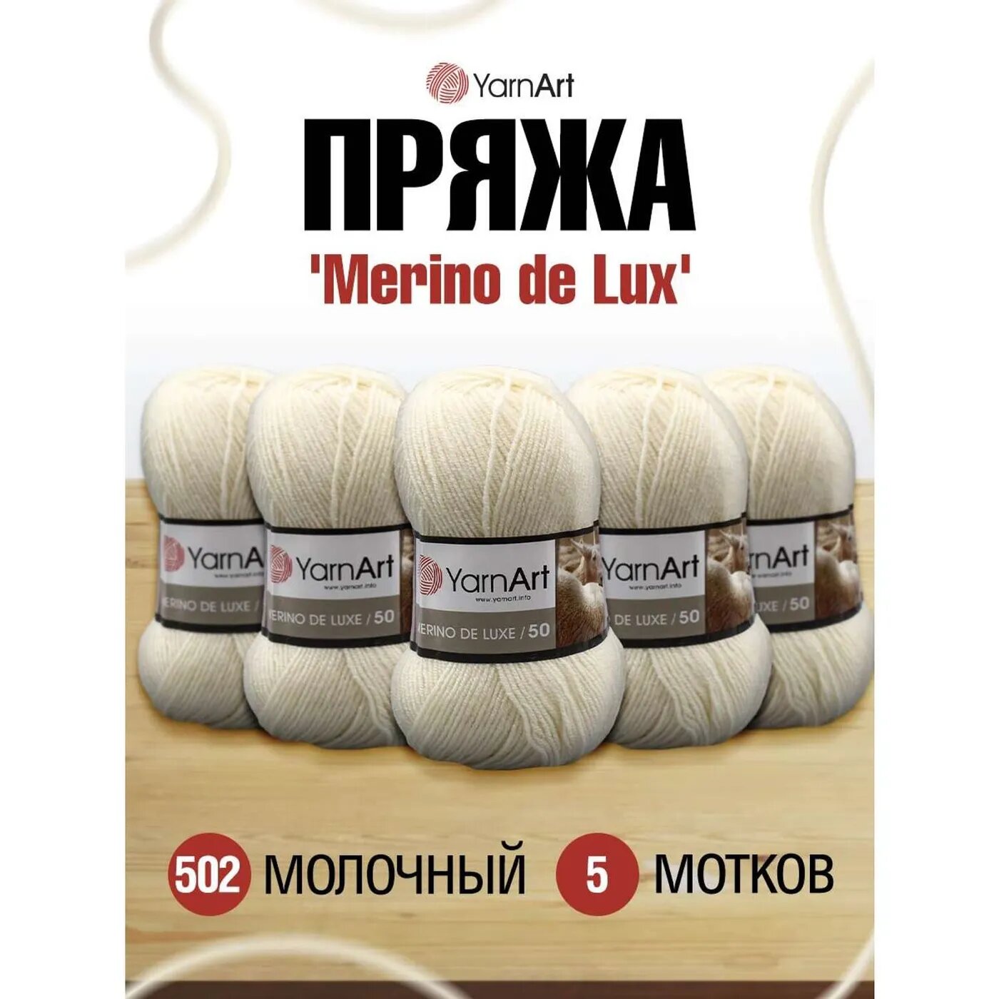 Купить Пряжа для вязания YarnArt 'Merino de Lux' 100г, 280м (50% шерсть, 50% акрил) (502 молочный), 5 мотков