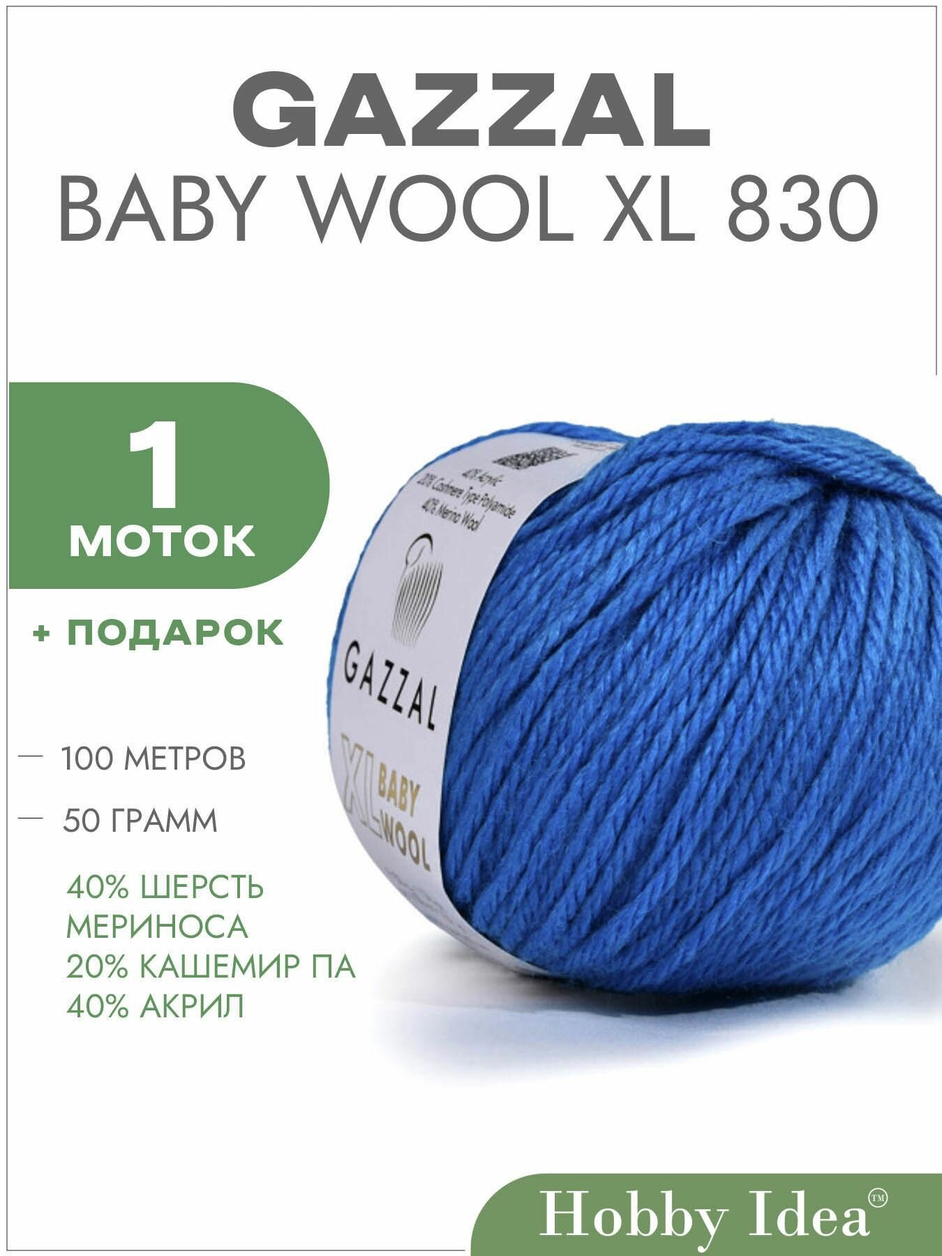 Пряжа Gazzal Baby Wool XL (40% Мериносовая шерсть, 20% Кашемир ПА, 40% Акрил) 50 г 100 м, 830 ярко-синий , 1 моток