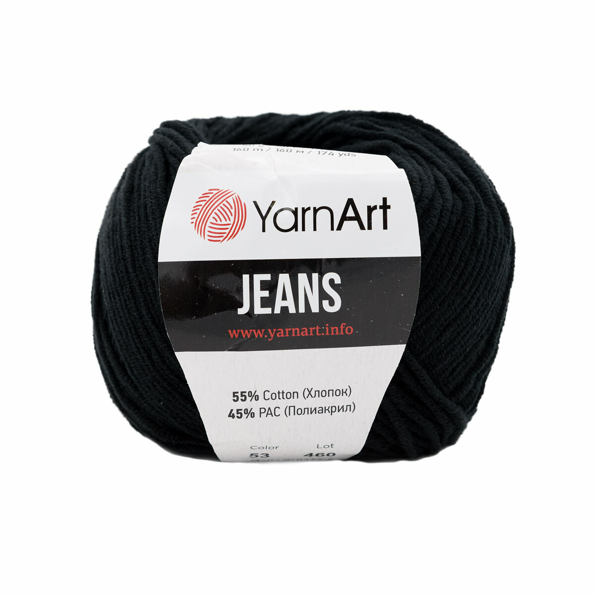 Пряжа YarnArt Jeans Ярнарт джинс Черный (53) 2 мотка 50 г/160 м (45% акрил 55 хлопок)