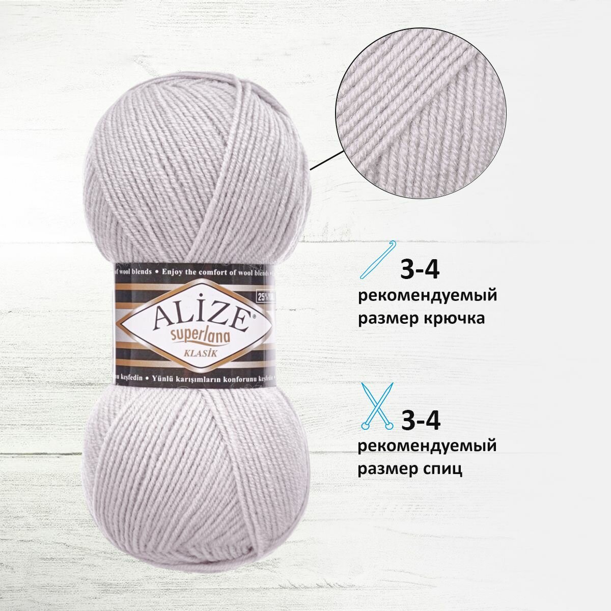 Пряжа ALIZE SUPERLANA KLASIK, пепельно-сиреневый - 505, 25% шерсть, 75% акрил, 5 мотков, 100 г, 280 м.
