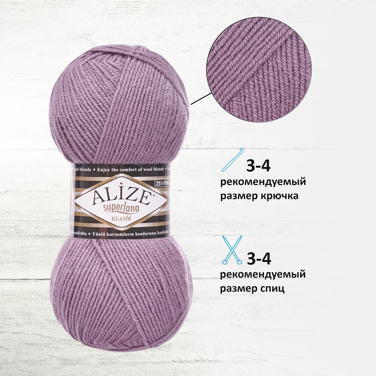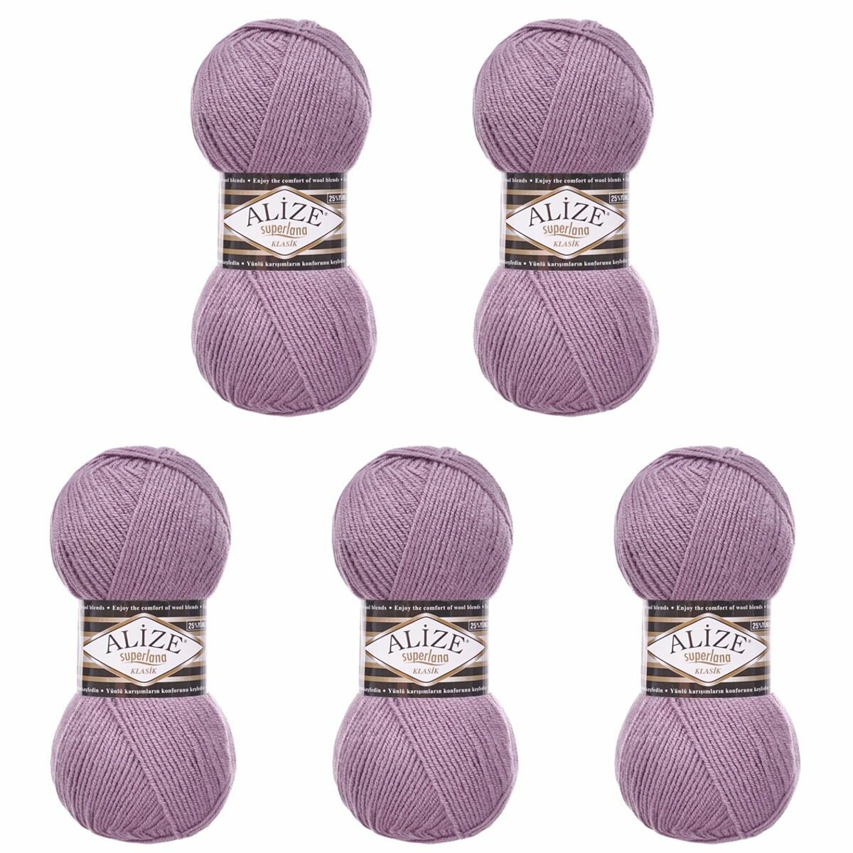 Пряжа ALIZE SUPERLANA KLASIK, пепельно-сиреневый - 505, 25% шерсть, 75% акрил, 5 мотков, 100 г, 280 м.