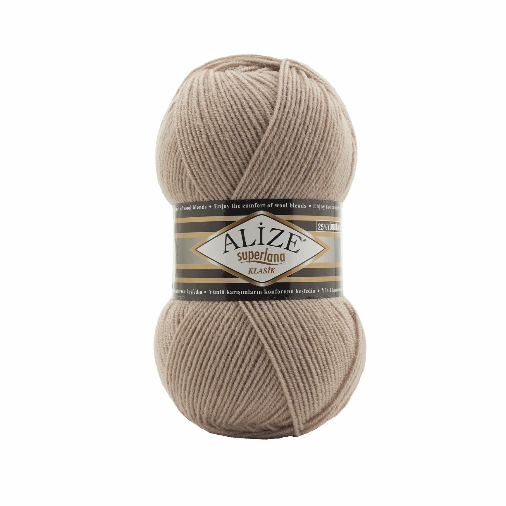 Пряжа Alize Superlana klasik (Ализе Суперлана Классик) - 2 мотка 466 темно-бежевый 25% шерсть, 75% акрил 100г/280м