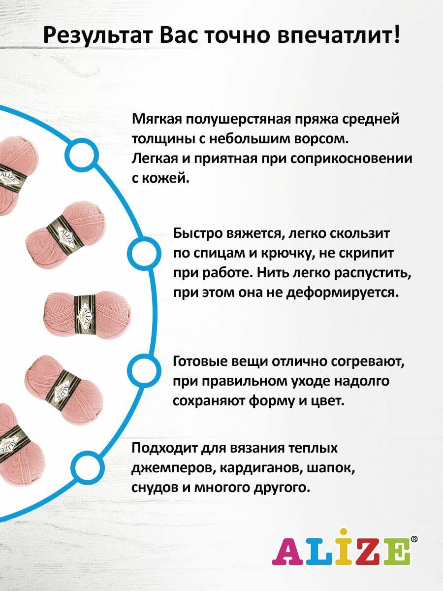 СохранитьПряжа для вязания ALIZE 'Superlana klasik', 100г, 280м (акрил, шерсть), ТУ (161 пудра), 5 мотков интересное: