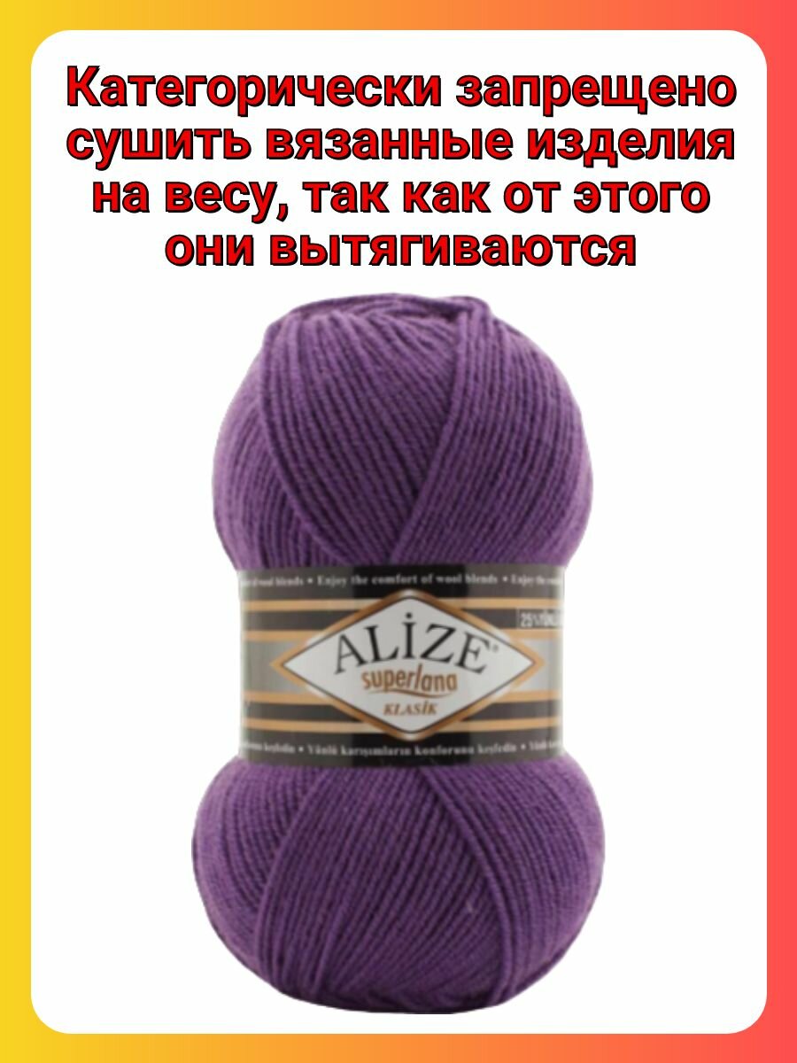 СохранитьПряжа Alize Superlana Klasik 44 темно-фиолетовый, 100 г, 280 м, 5 штук интересное: