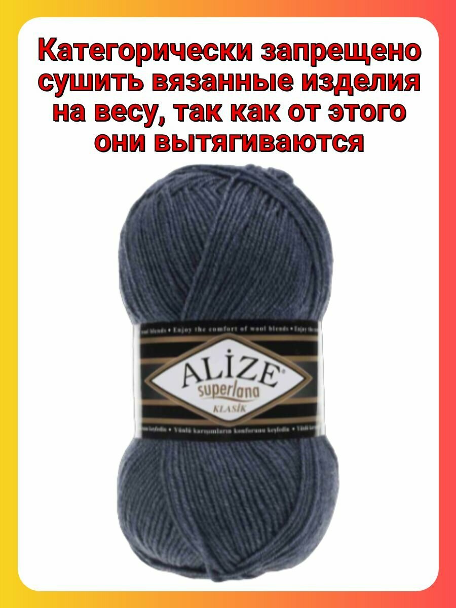 СохранитьПряжа Alize Superlana Klasik 203 джинс меланж, 100 г, 280 м, 5 штук интересное: