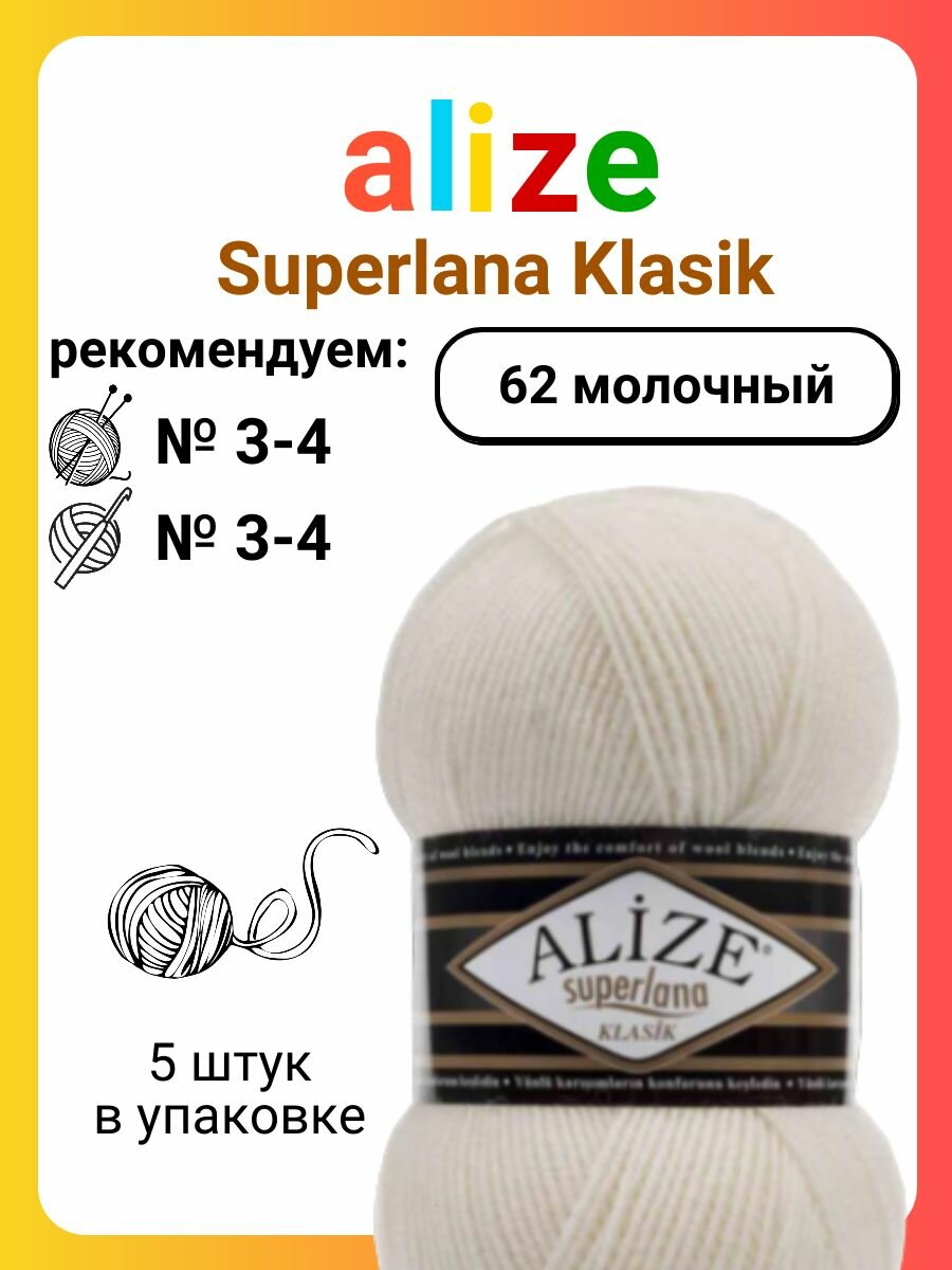 Купить Пряжа Alize Superlana Klasik 62 молочный, 100 г, 280 м, 5 штук