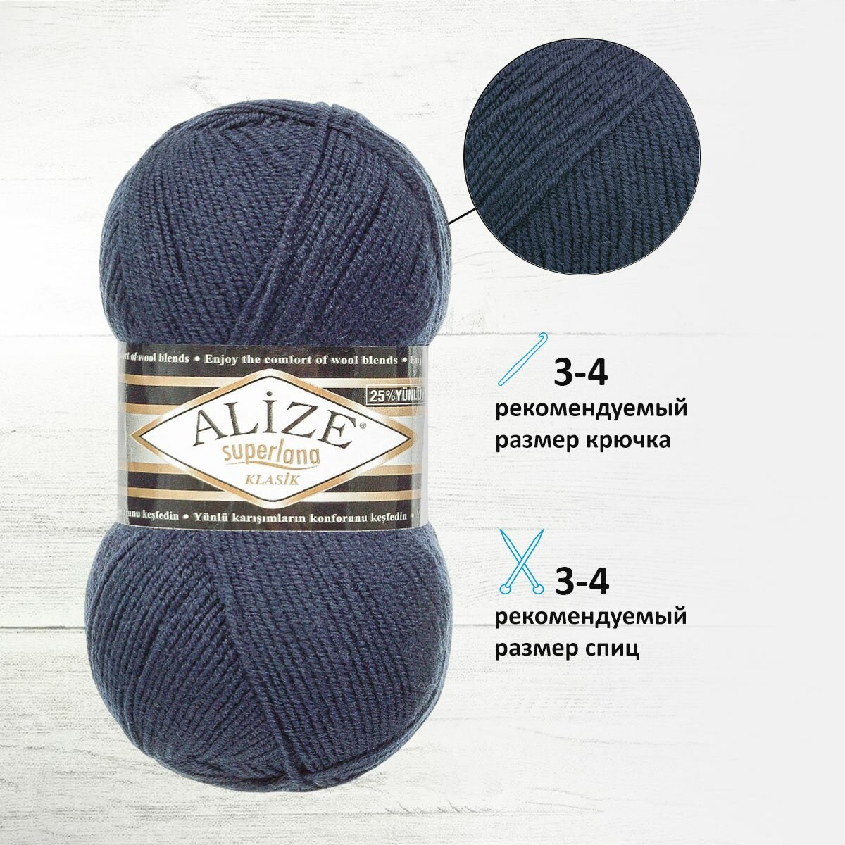Купить Пряжа для вязания ALIZE 'Superlana klasik', 100г, 280м (акрил, шерсть), ТУ (58 темно-синий), 5 мотков