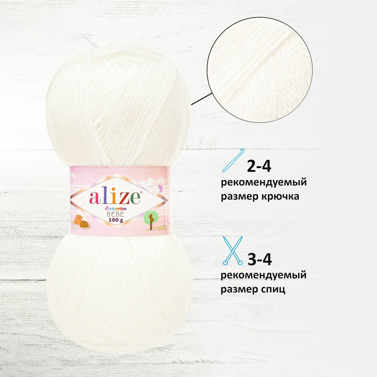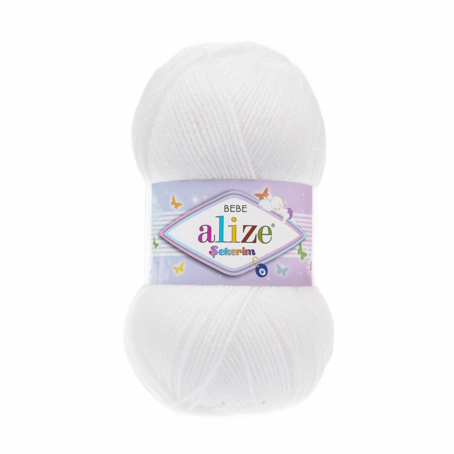 Пряжа для вязания Alize Sekerim Bebe (Шекерим Беби) - 5 мотков 55 белый, детская гипоаллергенная, 100% акрил, 320м/100г