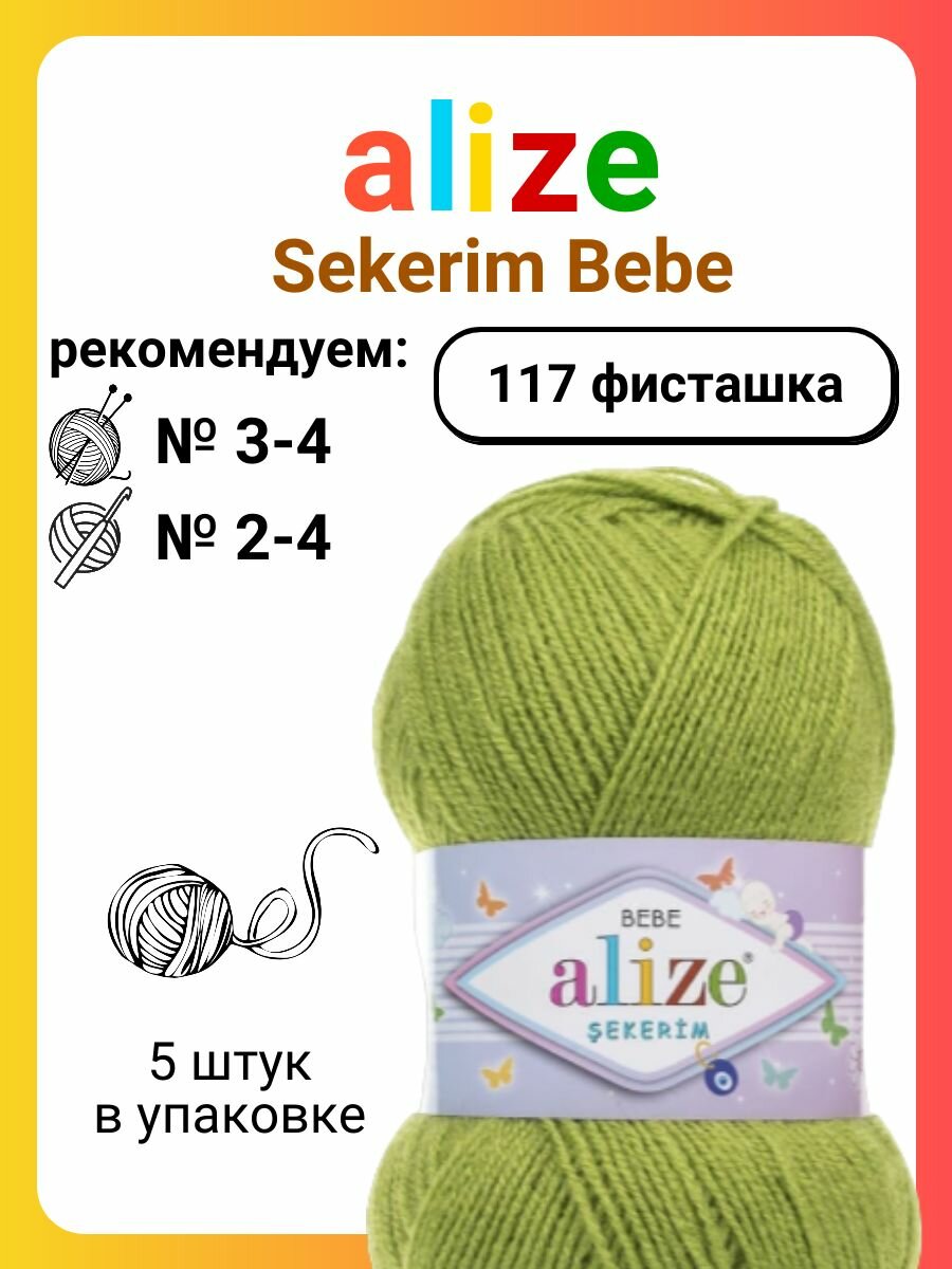 Пряжа Alize Sekerim Bebe Фисташка (117) 5 мотков 100 г/320 м (100% акрил) ализе шекерим бебе