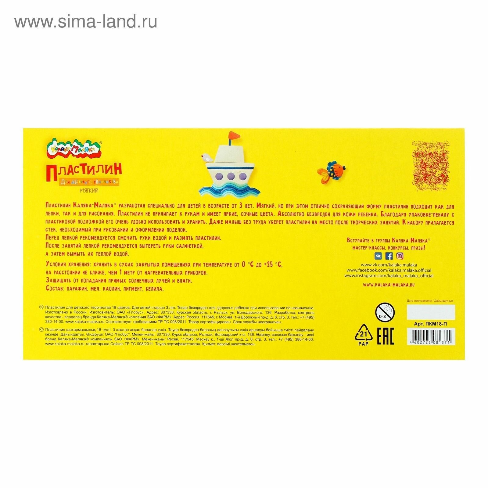 Купить Пластилин Каляка-маляка мягкий для детского творчества 18 цв. 270 г ассорти со стеком