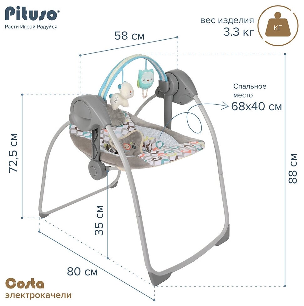 Электрокачели для новорожденного, Pituso "Costa Ромбы", съемный чехол, музыка, цвет мульти интересное: