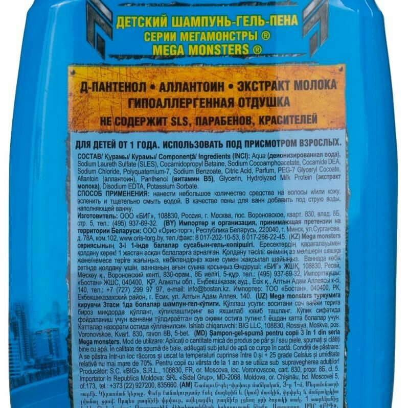 Мегамонстры Megamonsters Шампунь-гель-пена для детей 1+ 650 мл. интересное: