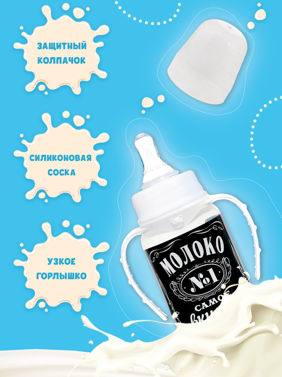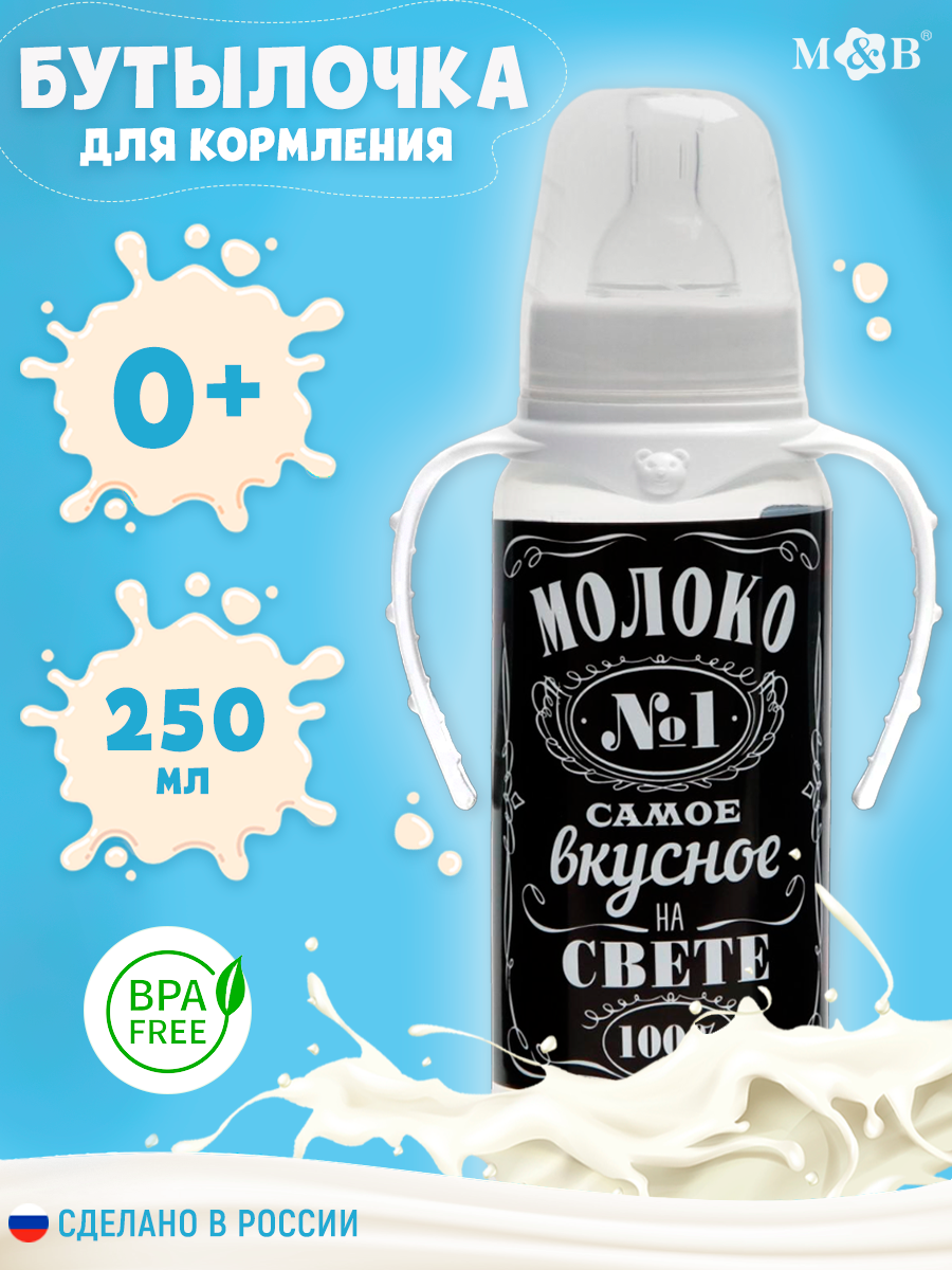 Бутылочка для кормления «Молоко № 1» детская классическая, с ручками, 250 мл, от 0 мес., цвет чёрный интересное: