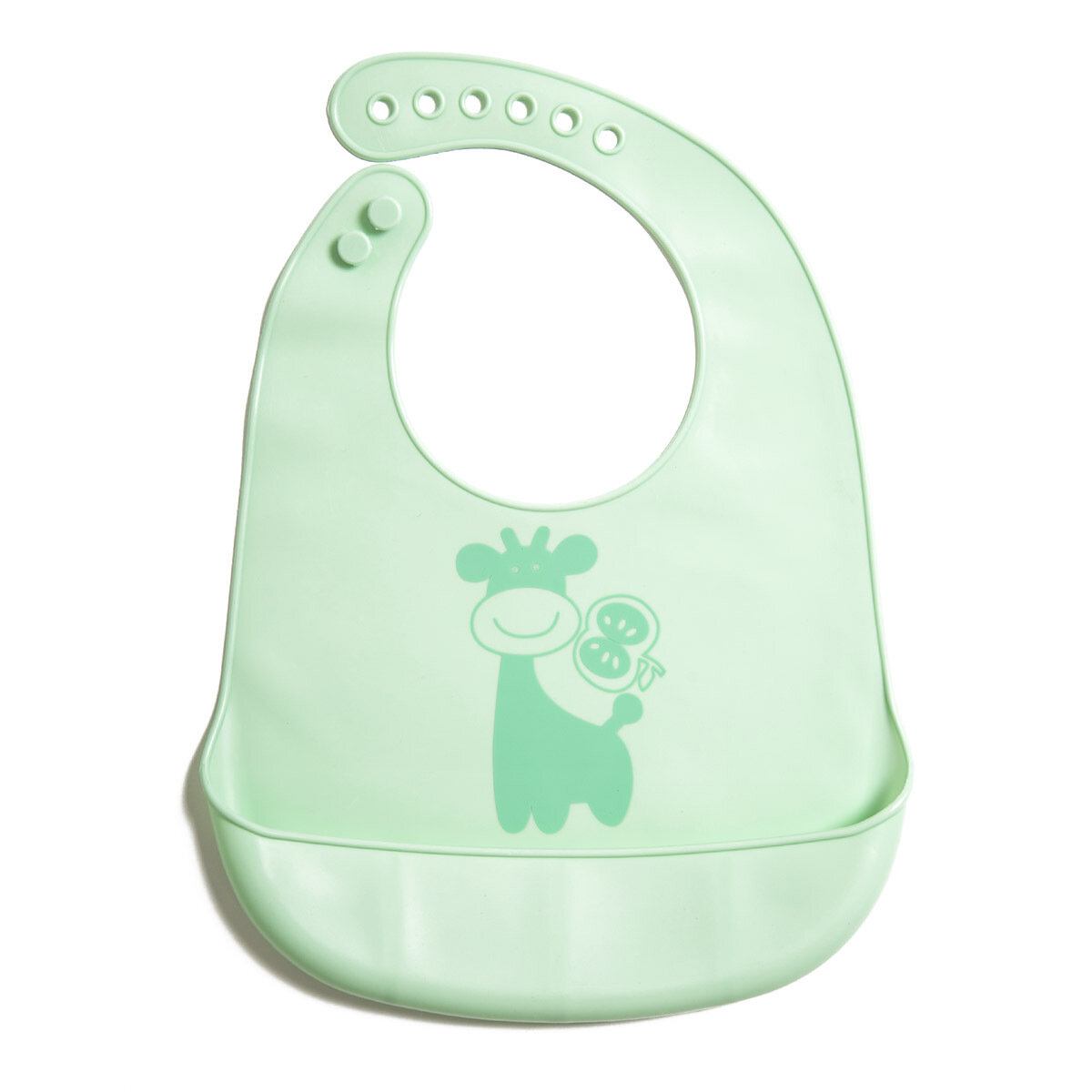 Нагрудник для кормления детский силиконовый с кармашком, Tessolo Home, 21х28, "Жирафик", мятный