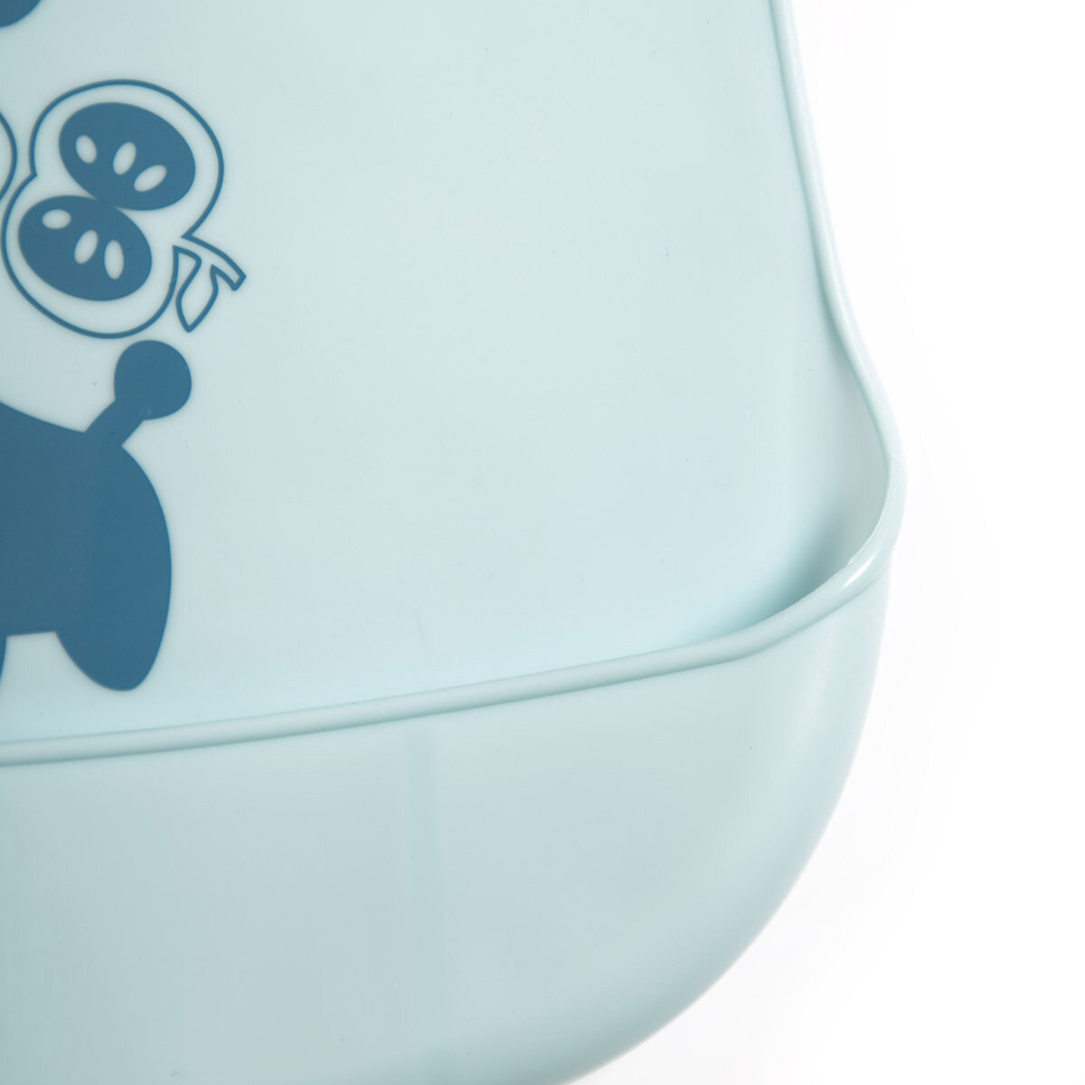 Нагрудник для кормления детский силиконовый с кармашком, Tessolo Home, 21х28, "Жирафик", мятный