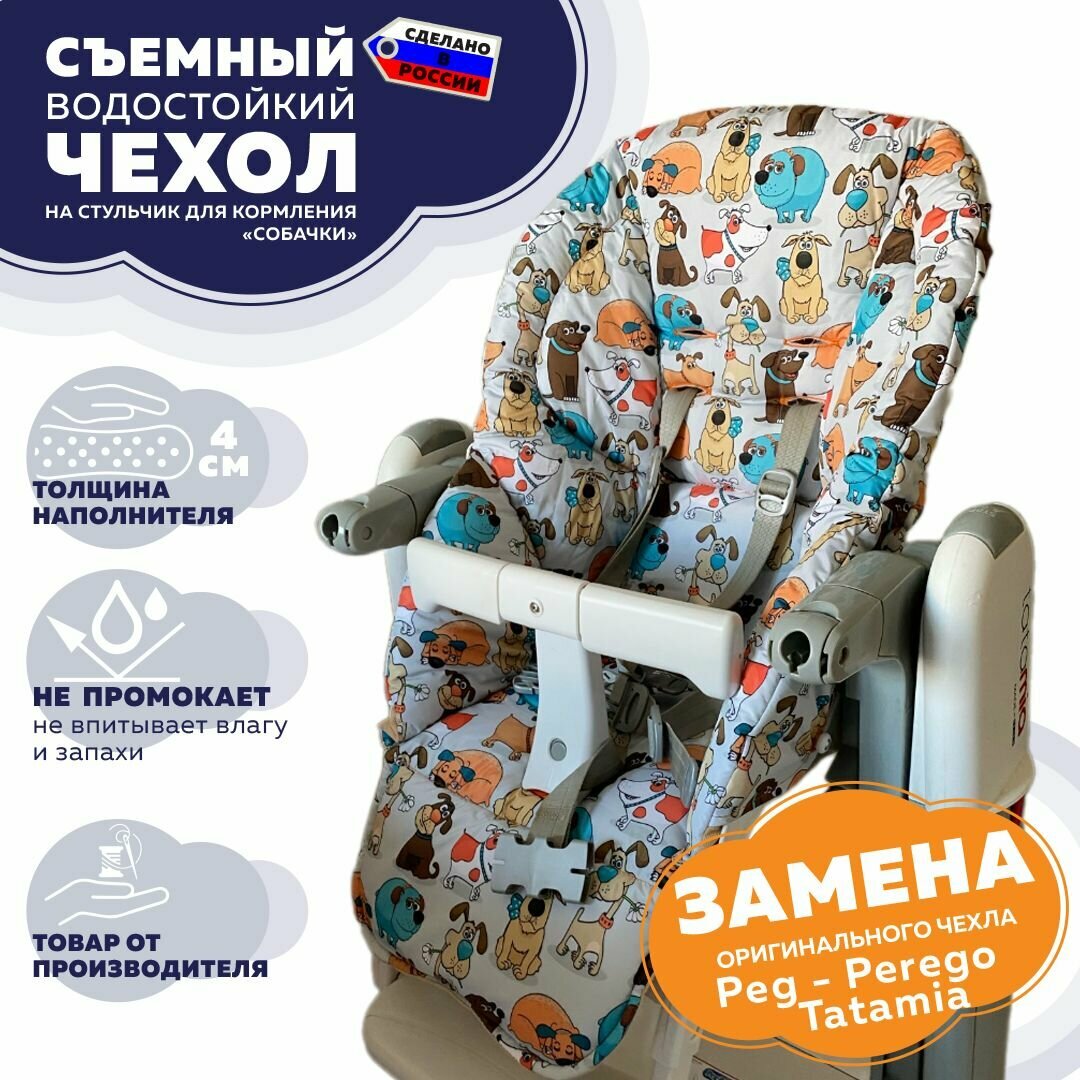 Купить Сменный чехол на стульчик для кормления Peg Perego Tatamia "Стрекоза", Собачки. Водостойкий