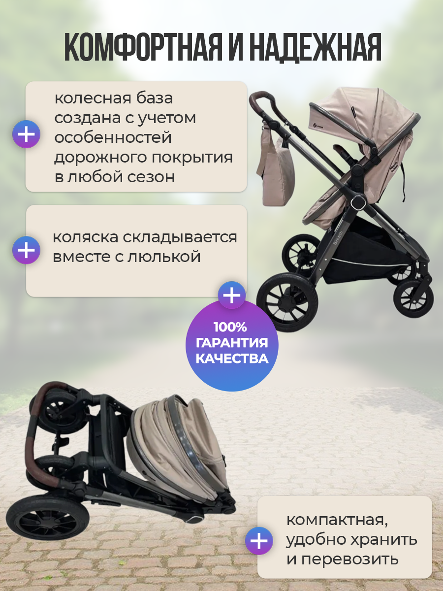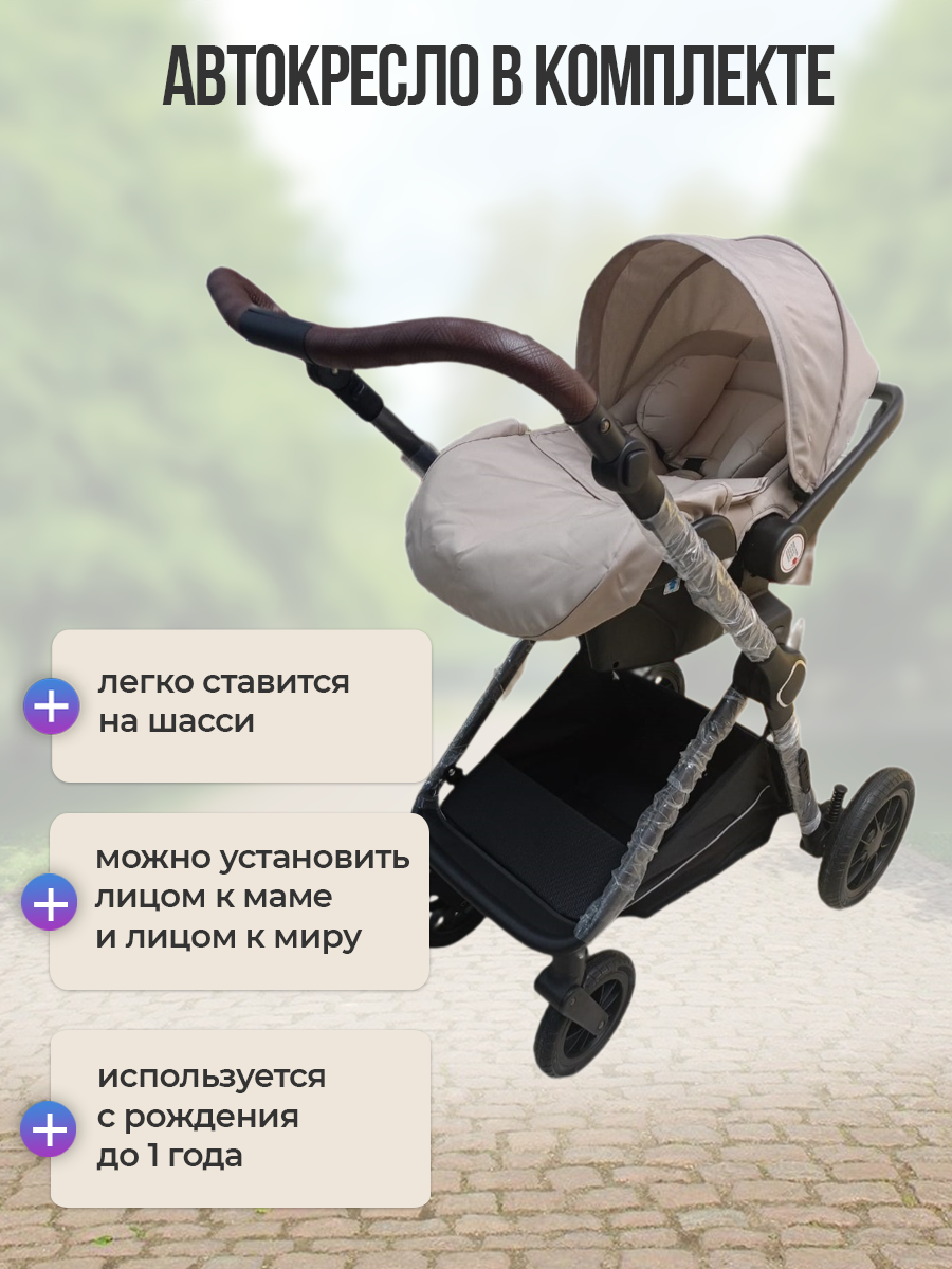 Детская коляска трансформер с перекидной ручкой Luxmom A4 3в1 хаки (бежевый)