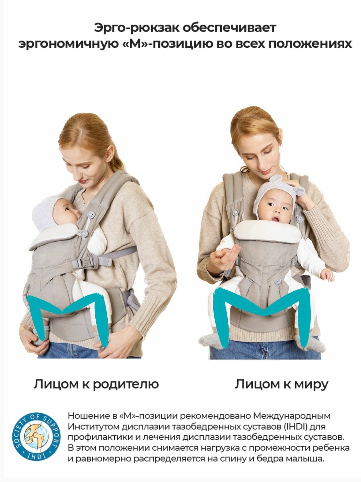 | Положение ребенка | сидя лицом к родителю / сидя спиной к родителю |