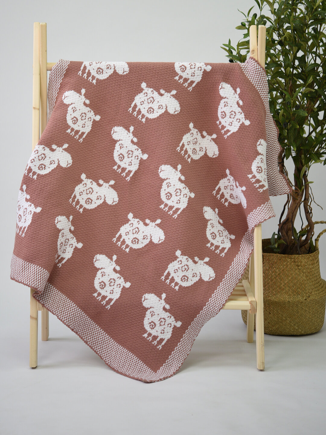 Плед вязаный утеплённый Совенок Дона 100x100 розовый
