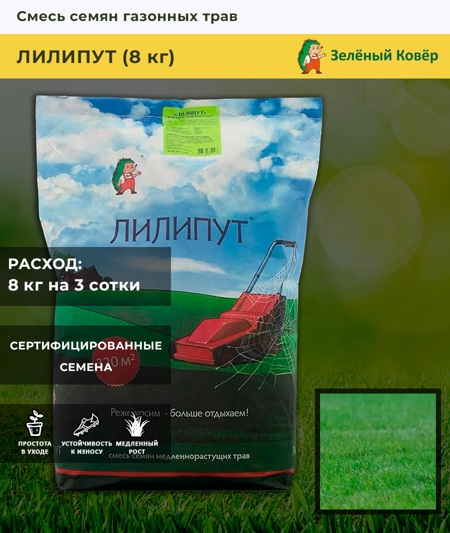 Смесь семян для газона Лилипут Медленнорастущий, 8 кг интересное: