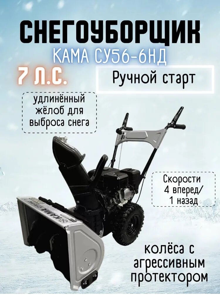 Снегоуборщик Кама СУ56-6НД 7л.с., 4впер/1наз, шир 56см, выс 42см, шнек 25см/самоходная машина для уборки снега интересное: