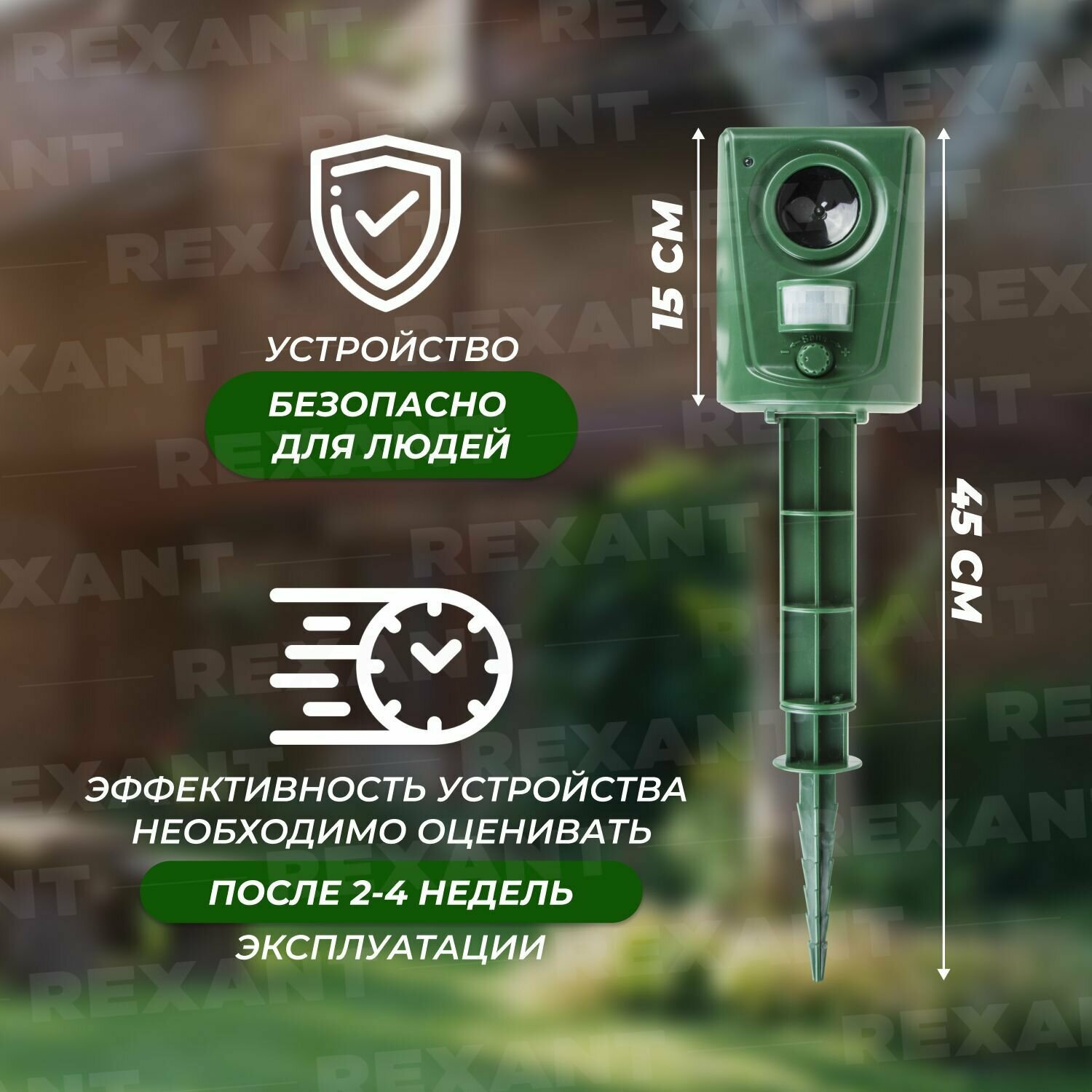 Ультразвуковой отпугиватель грызунов кротов мышей крыс REXANT на солнечной батарее для сада и дачи