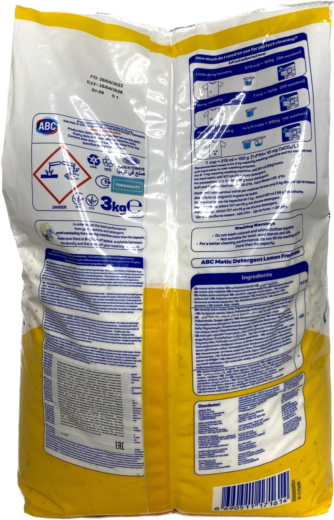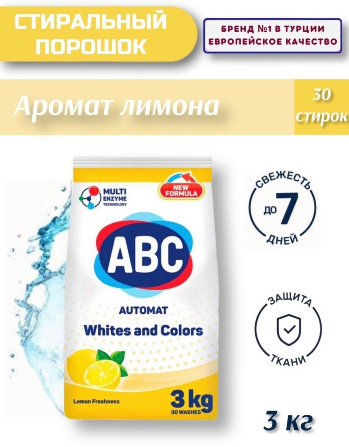 Купить Стиральный порошок АВС Универсальный, 3 кг. / Аромат Лимона/ АБЦ Турция