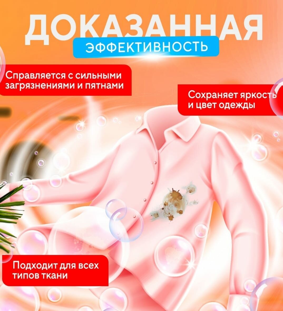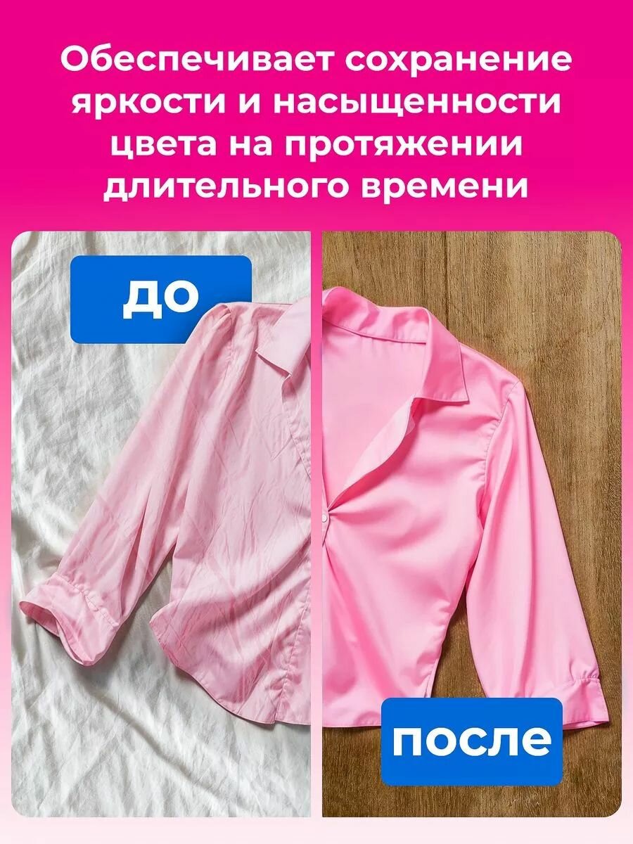 | Эффект | антибактериальный / антистатический / водоотталкивающий / восстановление цвета / отбеливание / придание мягкости / устранение неприятных запахов |
