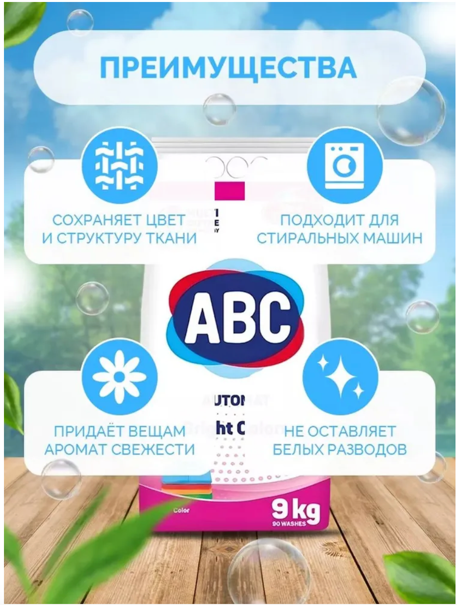 СохранитьСтиральный порошок ABC для цветных тканей 9 кг 90 стирок Турция интересное: