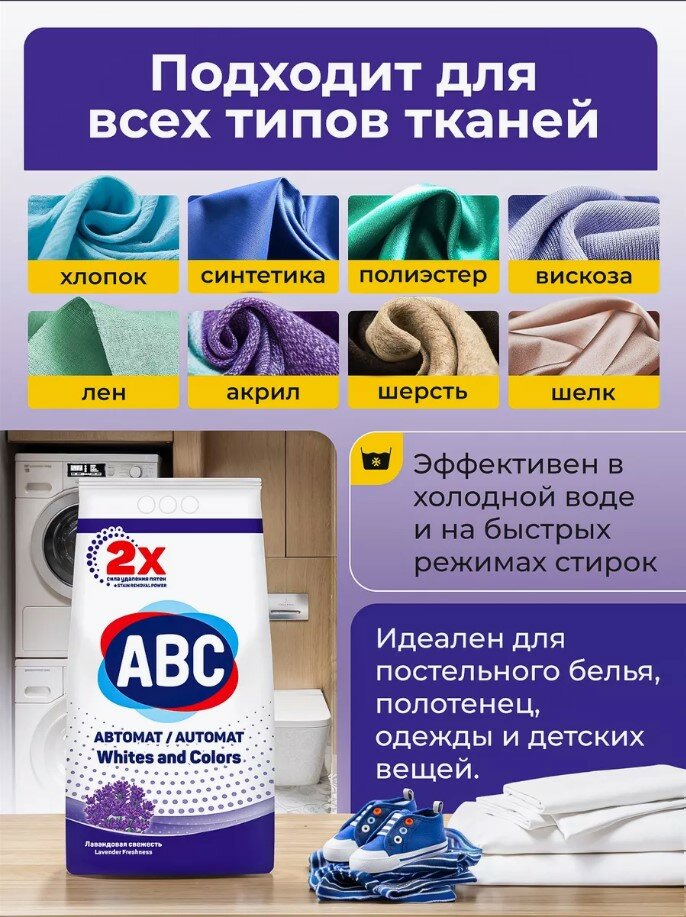 Стиральный порошок автомат для стирки универсальный ABC Лаванда 3 кг